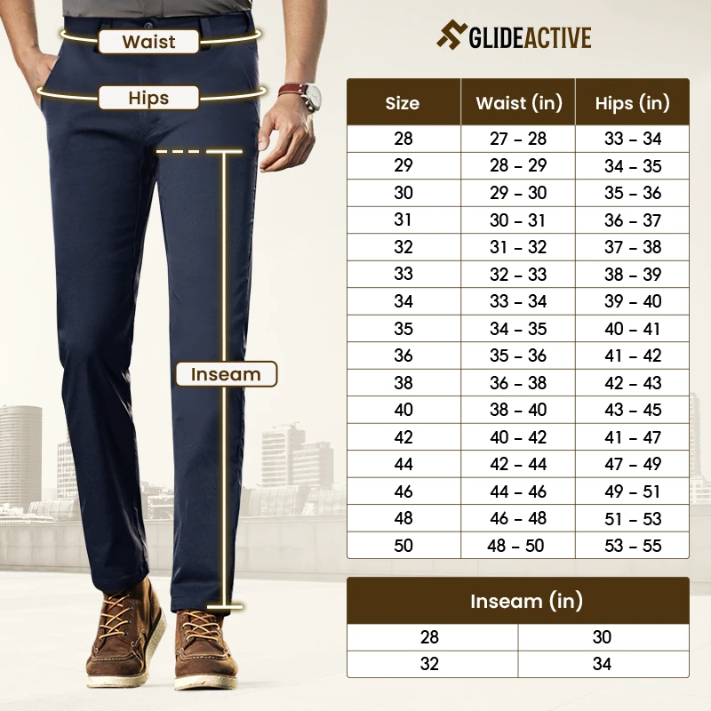 Please refer to the size guide below to get your correct size of waist, hips and inseam length. All measurements are in inches.